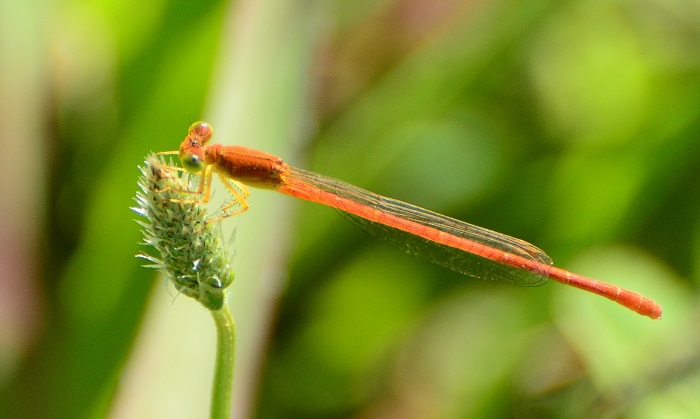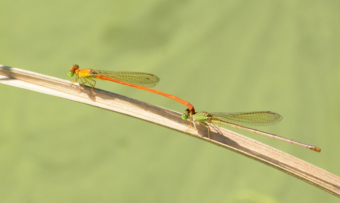 Over most of its South African range The Common Citril Ceriagrion glabrum is easily recognised by virtue of it being the only small, all-orange damselfy at any given site. However, in the Lowveld and far north-eastern KwaZulu-Natal there is another similar, albeit much rarer species, the Suave Citril Ceriagrion suave. These two species can be easily confused.