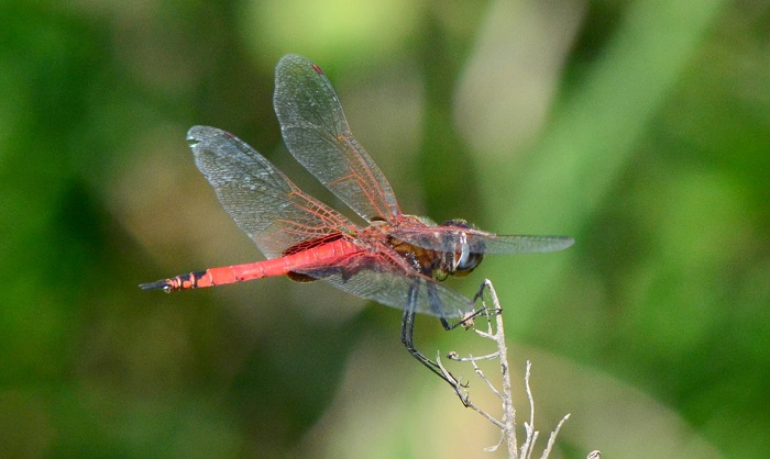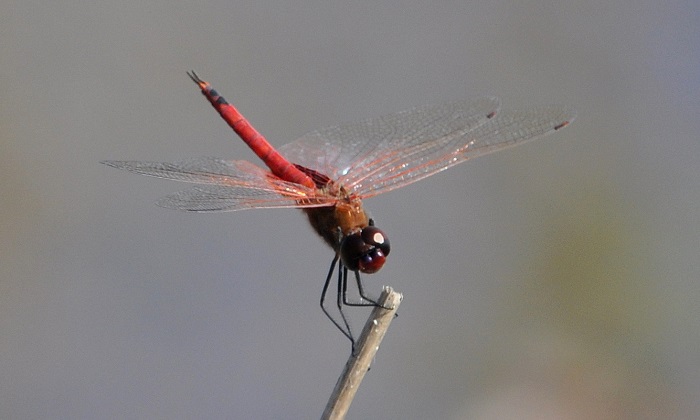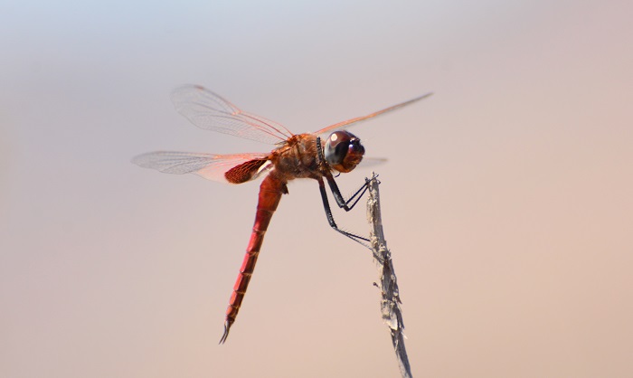 The Ferruginous Glider is a powerful, smooth flyer that spends much of its time on the wing. It mostly hunts in bush country away from the water. The Ferruginous Glider periodically perches on the tops of bushes, reeds, or trees. It is often gregarious and both sexes occur in the same vicinity. Tramea limbata is nomadic with erratic movements linked to rainfall.
