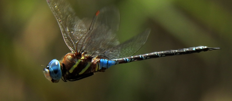 Cover photo by Diana Russell. Find the Evening Hawker in the FBIS database (Freshwater Biodiversity Information System) here. Family Aeshnidae Identification Very large size Length reaches 69mm; Wingspan attains 94mm. Adult males are unmistakable. The combination of brown thorax with a pair of diagonal lime-green stripes, brilliant blue eyes and large, bright blue saddle are … Continue reading Evening Hawker (Anaciaeschna triangulifera)