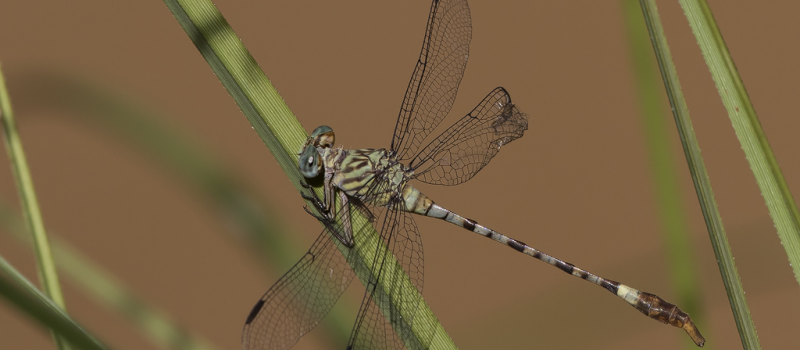 Cover photo by Desire Darling. Find the Spined Fairytail in the FBIS database (Freshwater Biodiversity Information System) here. Family Gomphidae Identification Medium sized, but one of the smallest members of its family. Length up to 47mm; Wingspan attains 57mm. The Spined Fairytail has the typical colouration of many gomphid species. It is best recognised by … Continue reading Spined Fairytail (Lestinogomphus angustus)