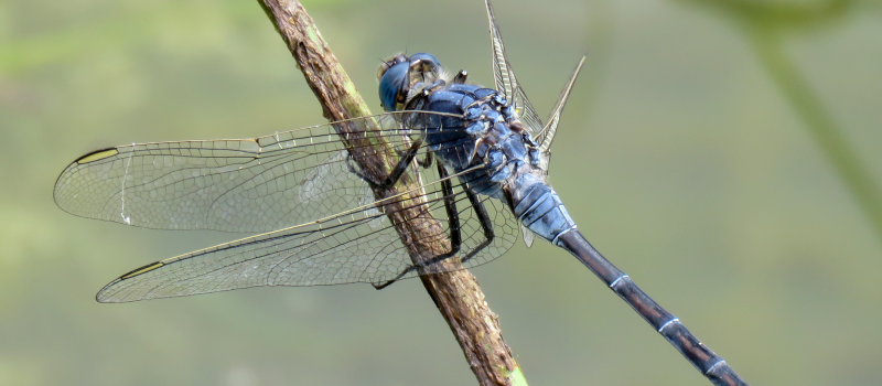 Cover photo by Diana Russell. Find this species in the FBIS database (Freshwater Biodiversity Information System) here. Family Libellulidae Identification Large size Length up to 67mm; Wingspan attains 82mm. The male Long Skimmer is unlikely to be mistaken for another species. The combination of its size, distinctive shape and dark greyish-blue colour render it unmistakable. … Continue reading Long Skimmer (Orthetrum trinacria)