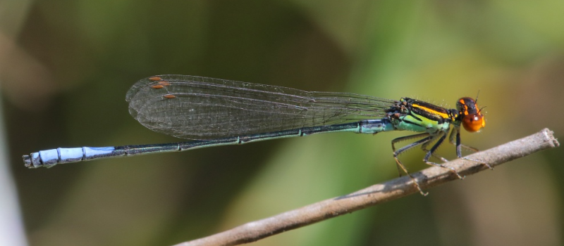Cover photo by Alan Manson. Find the Harlequin Sprite in the FBIS database (Freshwater Biodiversity Information System) here. Family Coenagrionidae Identification Small Size Length up to 32mm; Wingspan attains 40mm. Male Harlequin Sprites are brightly coloured and are most similar to the Painted Sprite (Pseudagrion hageni). Pseudagrion newtoni is far smaller and the terminal segments … Continue reading Harlequin Sprite (Pseudagrion newtoni)