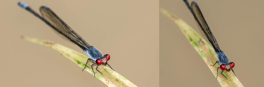 Cover photo by Carel van der Merwe. Find the Cherry-eye Sprite in the FBIS database (Freshwater Biodiversity Information System) here. Family Coenagrionidae Identification Small size Length up to 41mm; Wingspan attains 48mm. Male Cherry-eye Sprites are readily identified by the bright red front half of their eyes, combined with the purplish upper thorax and postocular … Continue reading Cherry-eye Sprite (Pseudagrion sublacteum)