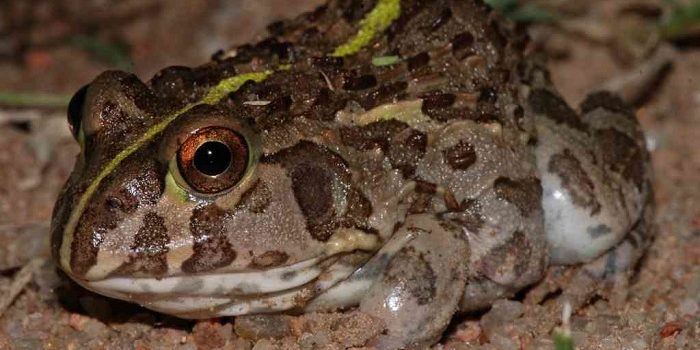 Cover photo by Andrew Hankey. Find the African Bullfrog Frog in the FBIS database (Freshwater Biodiversity Information System) here. Family Pyxicephalidae Identification The African Bullfrog is a large and robust species reaching a length of 120mm. The dorsal surface is light brown with greyish to brown patches and long dorsal ridges. A pale yellowish to green vertebral stripe … Continue reading African Bullfrog (Pyxicephalus edulis)