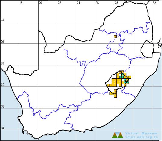 A. vertebralis is found at high altitudes in Lesotho and adjacent mountain ranges in KwaZulu-Natal, Free State and Eastern Cape Province, including the Witteberg range (Bates 2002).