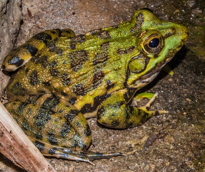 Poynton’s River Frog is active both day and night. It is active and vocal throughout much of the year. Sits in concealed positions at the waters edge. Jumps into water at the slightest disturbance where it hides at the bottom in soft sediment.