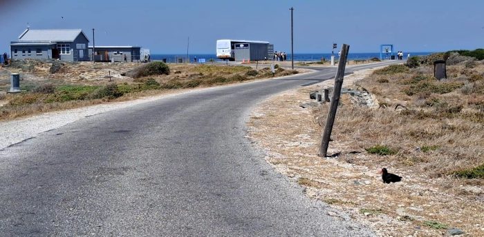 S01, the “Traffic Beacon Nest”. The big marker is a few metres away from the nest. Close to the nest there are arrows on the rocks to point to the nest. If the nest gets destroyed, by a predator, or worse, a storm (which moves stuff around), we can then work out where the eggs actually were. We need to do this, because the African Oystercatcher takes a minimalist approach to nest architecture.